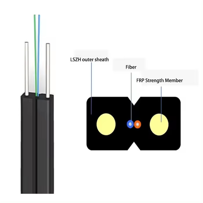 গঠন: কেন্দ্রীয় অপটিক্যাল ফাইবার + দুটি সমান্তরাল ইস্পাত তার + ঐচ্ছিক অতিরিক্ত ইস্পাত তার + LSZH জ্যাকেট