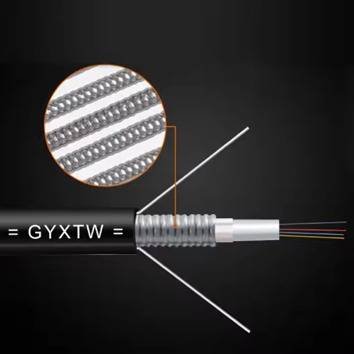 GYXTW fiber optic cable is a high-performance single-mode G652D armored cable widely used for aerial and duct applications. Known for its long-distance signal stability and reliability, it is a trusted choice in telecommunication networks and urban fiber deployments. Its dual steel wire strength member design provides excellent tensile strength, ensuring durability in outdoor environments.