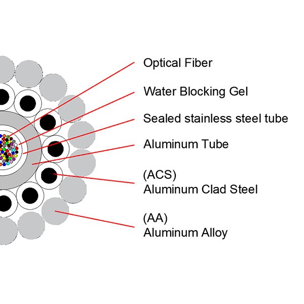 দ্যস্ট্র্যাংড অপটিক্যাল গ্রাউন্ড ওয়্যারতৈরি করা হয়অ্যালুমিনিয়াম-প্লেটেড স্টীল (এসিএস) তারের দুই বা তিন স্তর, অথবা এসিএসের সমন্বয় এবংঅ্যালুমিনিয়াম খাদের তার, অফারযান্ত্রিক শক্তি, স্থায়িত্ব এবং বৈদ্যুতিক কর্মক্ষমতা. স্ট্যান্ডার্ড ডিজাইনে একটিঅপটিক্যাল ফাইবারের জন্য কেন্দ্রীয় স্টেইনলেস স্টীল টিউব, অতিরিক্ত সুরক্ষার জন্য অ্যালুমিনিয়াম দিয়ে আবৃত।